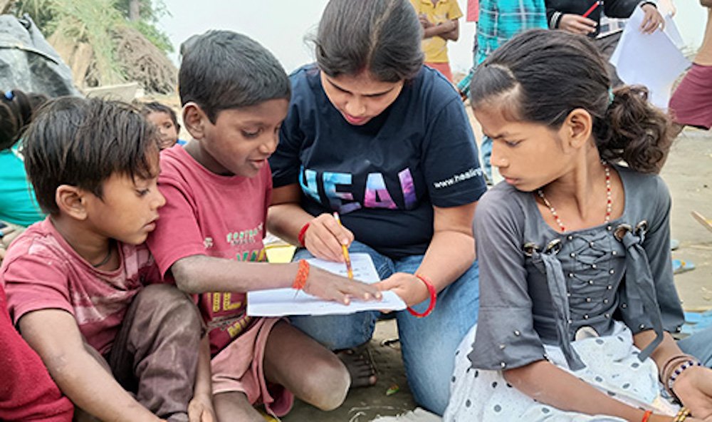 The HL teachers visit these schools 5 days a week and teach the children basic subjects- English, Hindi, regional language, Maths, Sciences and Art.